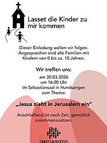 KiWo Hundsangen 30.03. 2026 16:00 Sebastiansaal Hundsangen Thema: Jesus zeiht in Jerusalem ein anschließend gemütliches Beisammensein